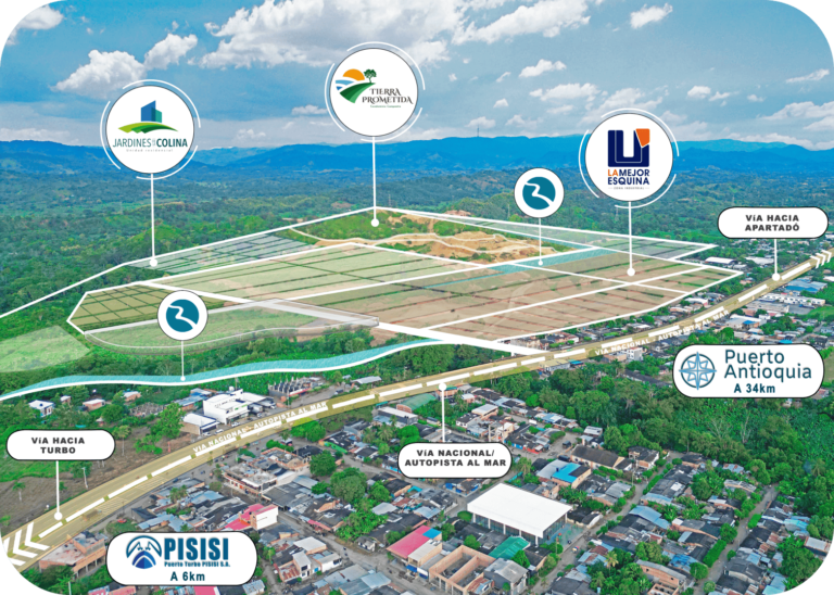 La Mejor Esquina, Zona Industrial, se encuentra estratégicamente en el Urabá Antioqueño, en el epicentro del desarrollo portuario y vial de la región. A solo 34 km de Puerto Antioquia y 6 km del futuro Puerto Pisisí, con acceso directo a la vía nacional.